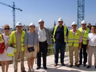 El regidor realizó una visita hasta la zona más alta de Metropol Parasol, hasta el futuro mirador aún no instalado y que se encuentra a una altura cercana a los 30 metros. En la gran plaza pública recibió información sobre la evolución de los trabajos y el proceso de colocación de las lamas de madera, que se hace mediante un "minucioso" trabajo de topógrafos desde la zona más alta de los parasoles, para garantizar la correcta colocación de las distintas piezas.