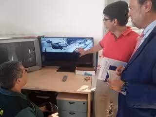 Estas actuaciones urgentes han sustituido las luminarias de la entrada en el vial 1, instalando un cuadro de mando y protección y dos cámaras de seguridad en la entrada, junto con los equipos centrales de grabador y monitor. De este modo, se podrá contar con el control de accesos e iluminación en la entrada del recinto.
