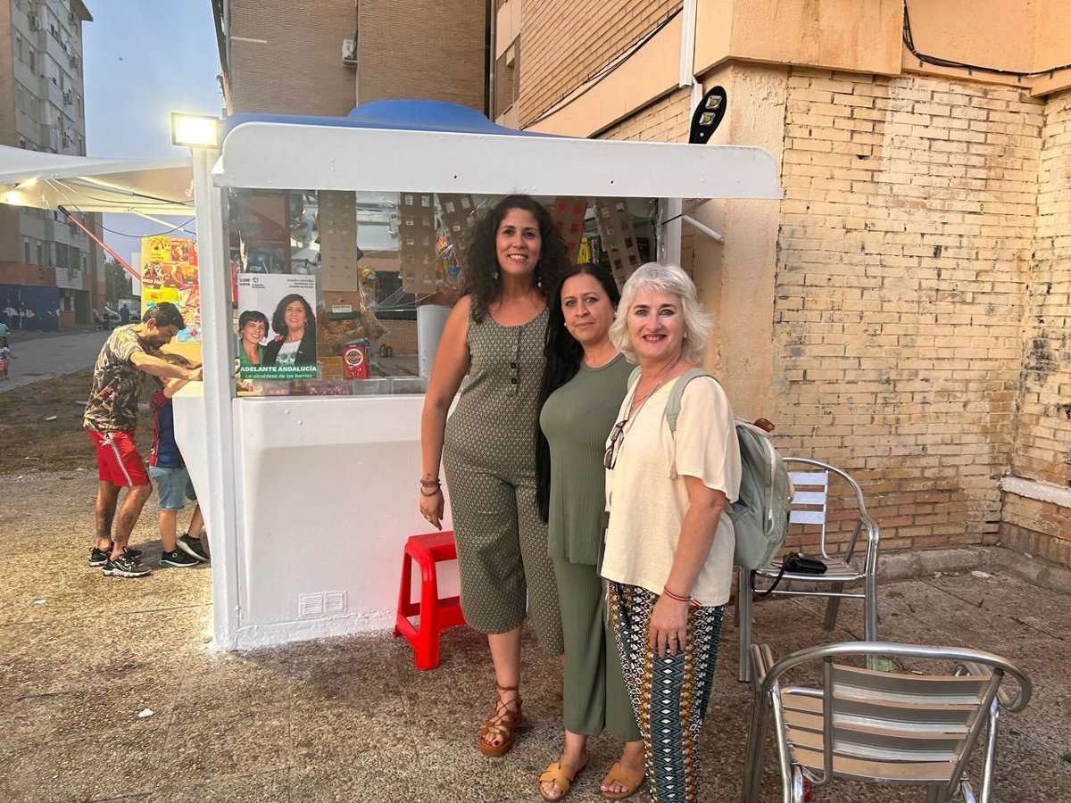 La candidata de Adelante Andalucía en Sevilla, Sandra Heredia, junto con la número dos de la candidatura, Paqui Maqueda, han realizado un acto con vecinos, vecinas y entidades del Polígono Sur para poner en común propuestas y preocupaciones en relación al barrio.
