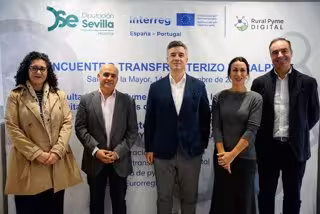 Sanlúcar la Mayor ha acogido este viernes el tercer encuentro transfronterizo Ruralpyme, una cita promovida por Prodetur, sociedad instrumental de la Diputación de Sevilla, en el marco del proyecto 'Ruralpyme Digital AAA', cofinanciado por el Programa Interreg España-Portugal (Poctep).