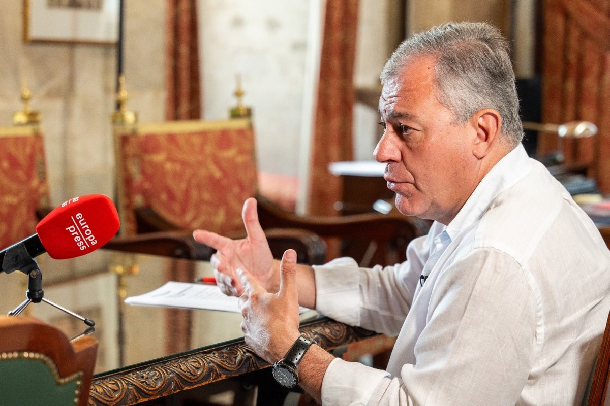 José Luis Sanz durante la entrevista en su despacho del Ayuntamiento - FRANCISCO J. OLMO/EUROPA PRESS