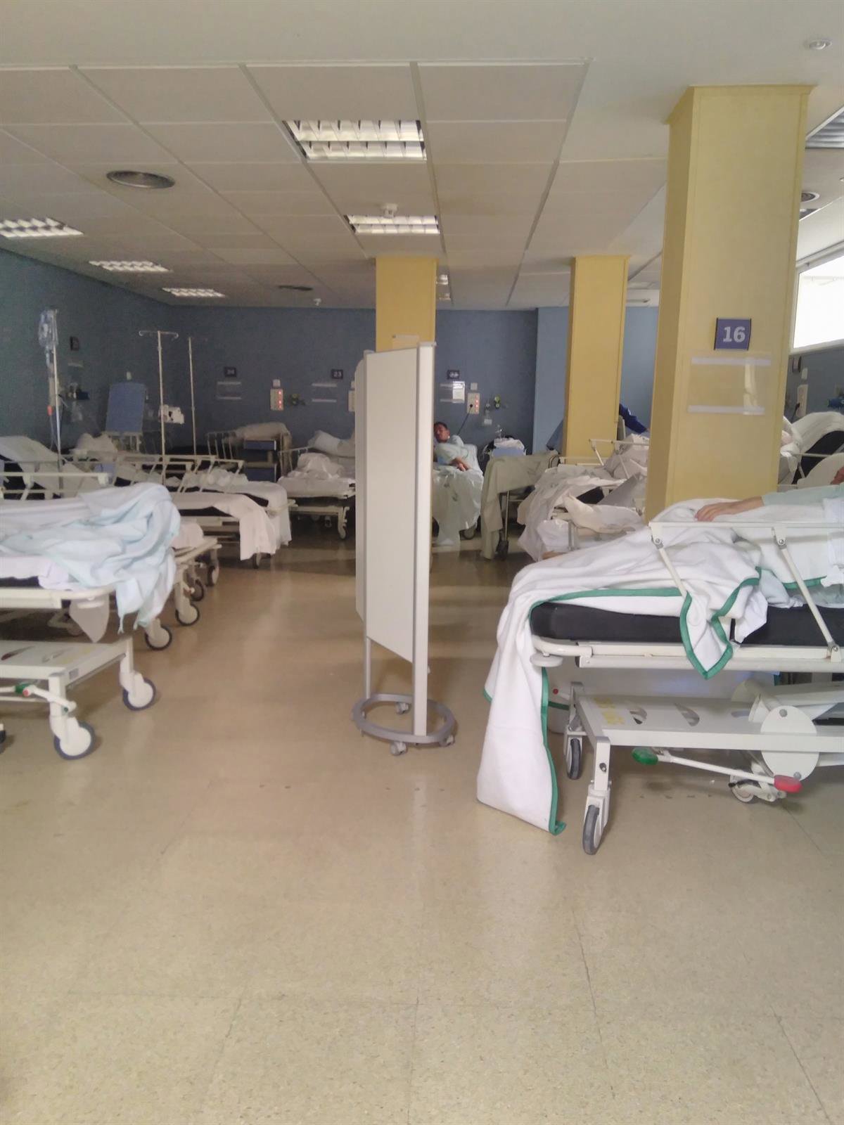 Por otra parte, el sindicato denuncia que los pacientes "están sufriendo de forma muy directa los problemas de este servicio", donde se dan situaciones "penosas como en Sala de Evolución o pendiente de ingresos, con los usuarios hacinados en un espacio con 13 camillas en un espacio de tan solo 45 metros cuadrados, distando escasamente 50 centímetros entre cada una de las camillas". Esta sala, expone Satse, "se completa con otro área para 15 usuarios en cama, en un espacio no mucho más grande, lo que hacen un total de 28 pacientes en un espacio reducido".