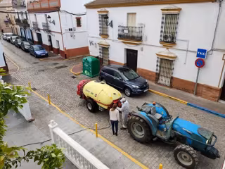 En el marco de las medidas preventivas promovidas contra la propagación del coronavirus Covid-19 y el estado de alarma implantado para detenerlo, numerosos empresarios y trabajadores del sector agrícola están colaborando en las localidades de la provincia de Sevilla con las labores de desinfección acometidas en las calles de tales municipios.