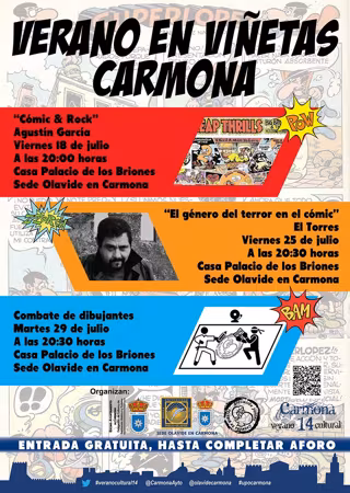 Esta actividad está incluida dentro de la agenda del verano cultural 2014, organizado por la sede de la Universidad Pablo de Olavide en Carmona, la Delegación de Cultura y de Patrimonio Histórico y Turismo del Ayuntamiento de Carmona y la Asociación Juvenil Carmona en Viñetas.