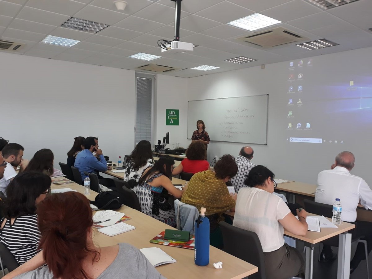 Alumnos de los cursos de verano de la Universidad Internacional de Andalucía (UNIA) siguen la intervención de la escritora Sara Mesa - UNIA - Archivo