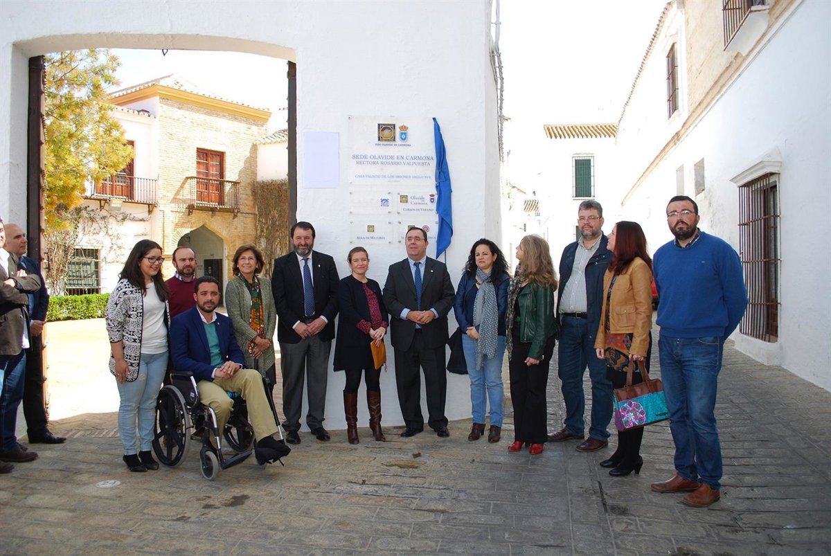 El rector de la Universidad Pablo de Olavide (UPO) de Sevilla, Vicente Guzmán, y el alcalde de la localidad sevillana de Carmona, Juan Ávila, han presidido este viernes el acto de rotulación de la sede de la institución en el municipio, sita en la Casa Palacio de los Briones, como 'Sede Olavide en Carmona Rectora Rosario Valpuesta', en el que se ha descubierto una placa con la nueva denominación.