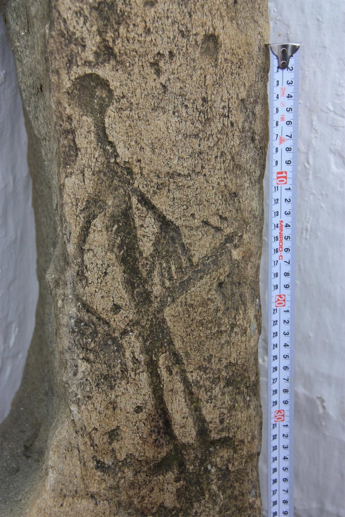 La pieza, tallada en roca de tipo mica-esquisto, 1,82 metros de altura, 23 centímetros de ancho conservado y 30 centímetros de grosor, constituye la mitad de una estela prehistórica rota en sentido vertical que originalmente habría pesado unos 500 kilogramos, toda vez que el fragmento restante está en paradero desconocido.