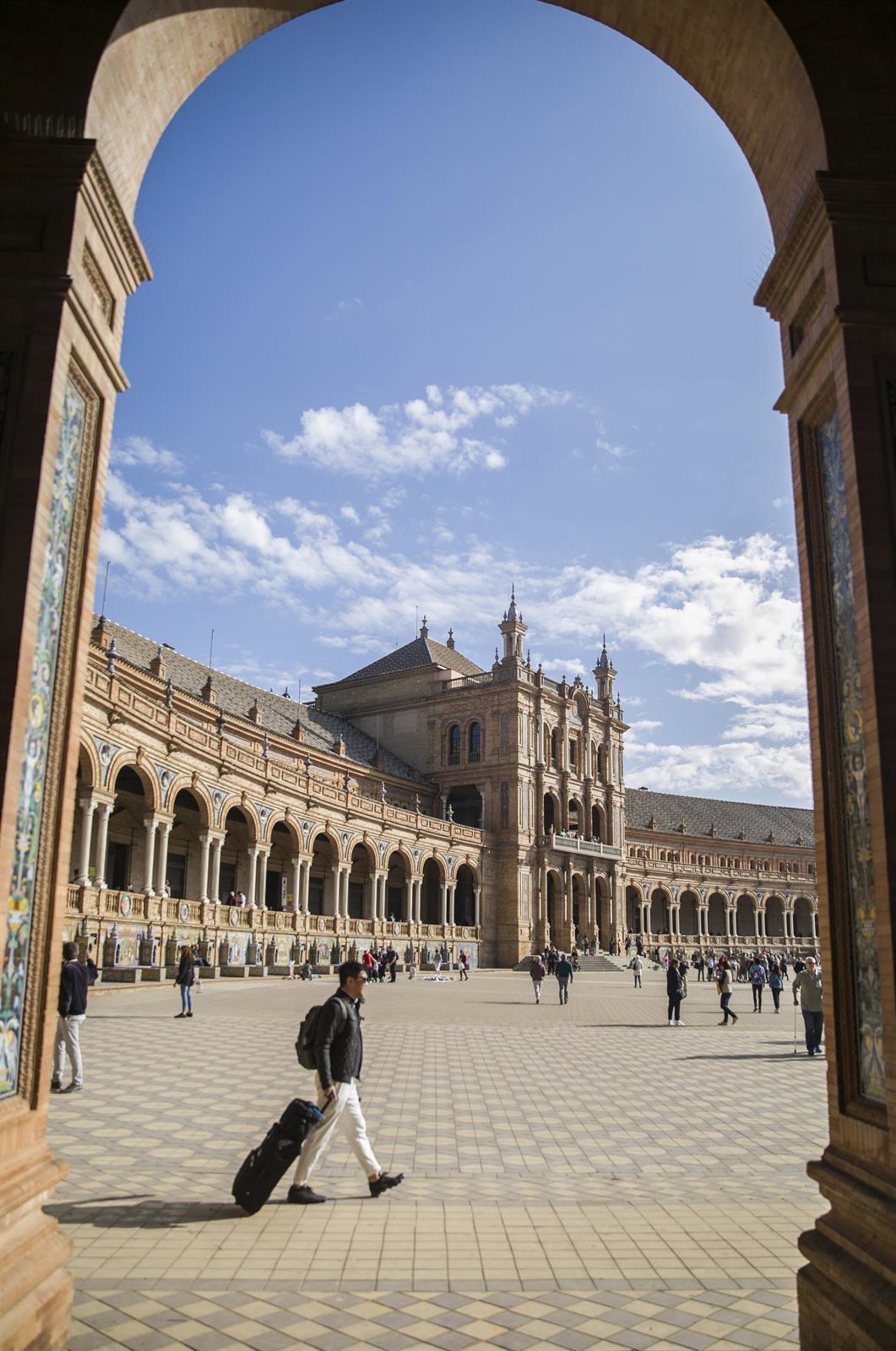 Imágenes de recurso de turistas en la Plaza de España de Sevilla (Andalucía, España), a 22 de octubre de 2019. - María José López - Europa Press - Archivo
