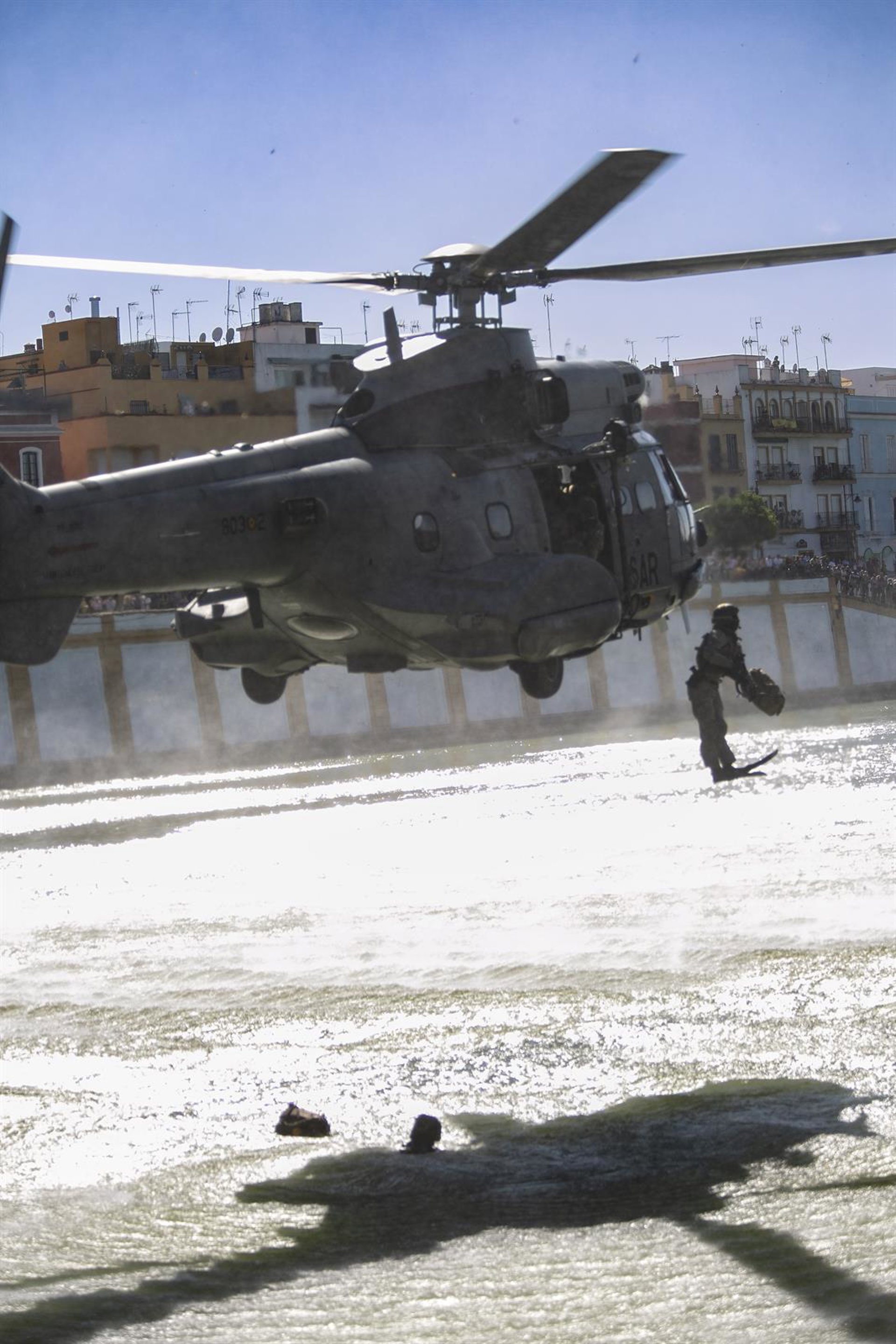Todo ello, después de que las actividades paralelas al desfile hayan cosechado un importante seguimiento por parte de la ciudadanía hispalense, por ejemplo con la instalación de un puente flotante sobre el río Guadalquivir, la realización de un espectacular ejercicio práctico en el río con el despliegue de helicópteros como un gigantesco CH-47 Chinook para simular un rescate de rehenes, o una exposición estática de armamento, vehículos y equipamiento militar en la Plaza de España.