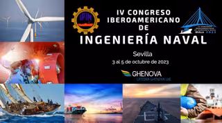 Cartel del IV Congreso Iberoamericano de Ingeniería Naval, que se celebrará en Sevilla en octubre de 2023. - GHENOVA