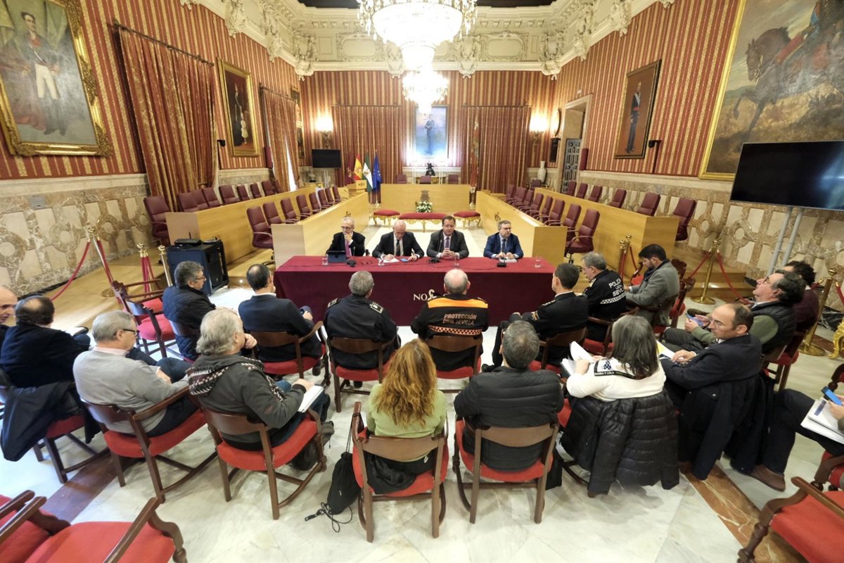 El alcalde de Sevilla, Antonio Muñoz, ha presido este viernes la reunión del Centro de Coordinación Operativa (Cecop) de las fiestas navideñas 2022-2023, donde se han perfilado los últimos detalles para los distintos planes de movilidad, seguridad y operativos del resto de los servicios públicos.