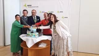 En un acto simbólico, el cónsul general de Rumanía en Sevilla, Bogdan Stanescu; el delegado de Turismo del Ayuntamiento hispalense, Francisco Páez; la directora de Promoción Internacional and Nice de Sevilla City Office, Beatriz Arilla; y la responsable de Marketing de Turismo Andaluz, Samira Kaddur, han compartido una tarta conmemorativa con el director del aeropuerto, Sergio Millanes, y la jefa de escala de Aviapartner (empresa que presta los servicios en tierra a Blue Air), Belén Villalobos, según detalla AENA en un comunicado.