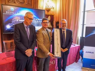 La Casa Consistorial ha acogido el II Consejo de alcaldes de la Comunidad de Ciudades Ariane (CVA), un evento clave para la cooperación entre ciudades en el ámbito espacial europeo. El Ayuntamiento de Sevilla a través del segundo teniente de alcalde, Álvaro Pimentel, ha hecho entrega formal del testigo de la presidencia de la CVA a Fabian Jordan, presidente de Mulhouse Alsace Agglomération, que ejercerá la Presidencia de Ciudades Ariane 2025.
