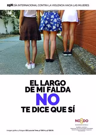 El Ayuntamiento de Sevilla, a través de la Delegación de Igualdad, Juventud y Relaciones con la Comunidad Universitaria, ha puesto en marcha la campaña con motivo del 25N, Día Internacional Contra la Violencia Hacia las Mujeres, que este año se presenta bajo el lema 'El largo de mi falda NO te dice que sí'.