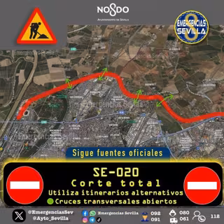 Según informa Emergencias Sevilla en sus redes sociales, consultadas por Europa Press, el corte de tráfico se activó a las 23.00 horas de este martes en ambos sentidos de la SE-20 "manteniendo permeables los cruces con vías transversales".