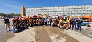 El delegado de Movilidad, Fiestas Mayores y Área Metropolitana del Ayuntamiento de Sevilla, Juan Carlos Cabrera, ha participado en el simulacro que se ha realizado en la 4 edición de la Feria Internacional de Rescate, Auxilio y Emergencias (Fireca) que se celebra en el Palacio de Exposiciones y Congresos (Fibes) de Sevilla.