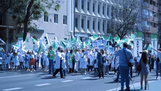 Durante la protesta, que se ha llevado a cabo sin incidentes, los manifestantes han elevado sus quejas bajos consignas tales como 'recortes en sanidad, vergüenza nacional', 'menos recortes y mejor gestión' y 'menos rateros y más sanitarios'.