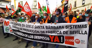 La plantilla de Santa Bárbara Sistemas en Sevilla, junto a los sindicatos CCOO, UGT, CGT y CSIF, mantiene las movilizaciones planteadas, que se han debatido este viernes en asamblea general, en rechazo al plan de reorganización de la dirección donde traslada las capacidades de montaje final y entrega de los blindados desde Alcalá de Guadaíra a Trubia (Asturias).