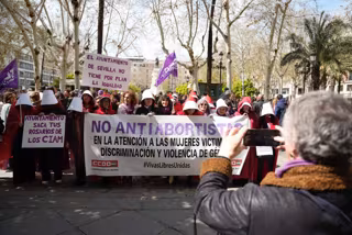 Los sindicatos CCOO y UGT han celebrado la mañana de este viernes sus correspondientes manifestaciones por el Día de la Mujer, coincidiendo ambas marchas ante el Ayuntamiento de Sevilla, a cuyo Gobierno popular reclaman que retire el apoyo formalizado en el pleno ordinario de enero, a una petición de Vox en demanda de que los Centros Integrales de Atención a la Mujer (CIAM) cuenten con "la colaboración de voluntarios de entidades de reconocida trayectoria en el apoyo a la mujer embarazada", para que los mismos elaboren "un programa de información" para estas mujeres, extremo que los sindicatos consideran un "adoctrinamiento ideológico dentro de los espacios públicos".