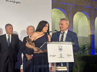 La escritora Ángelica Yuste, ganadora del Premio de Novela Ateneo Joven, recibe el galardón durante el acto celebrado en el Alcázar. - ATENEO