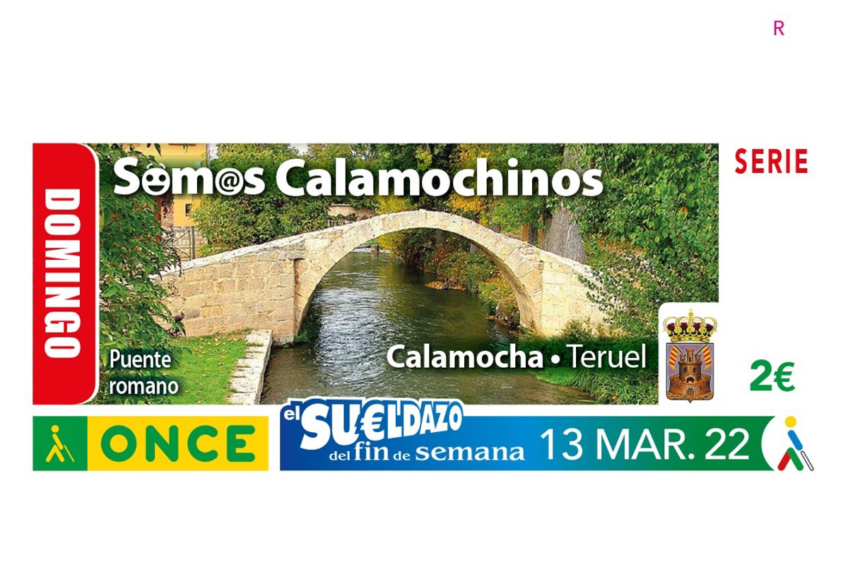 El sorteo estaba dedicado al gentilicio de Calamocha (Teruel), 'Somos Calamochinos', dentro de la serie monográfica que la ONCE dedica a los gentilicios más singulares de España, y ha dejado el resto de premios en Canarias, Cataluña y la Comunidad Valenciana.