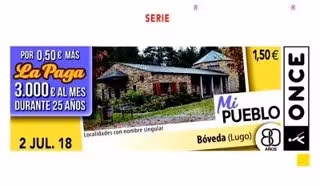 El sorteo del lunes estaba dedicado a la localidad de Bóveda de Lugo, dentro de la serie monográfica dedicada a los municipios con nombre singular.
