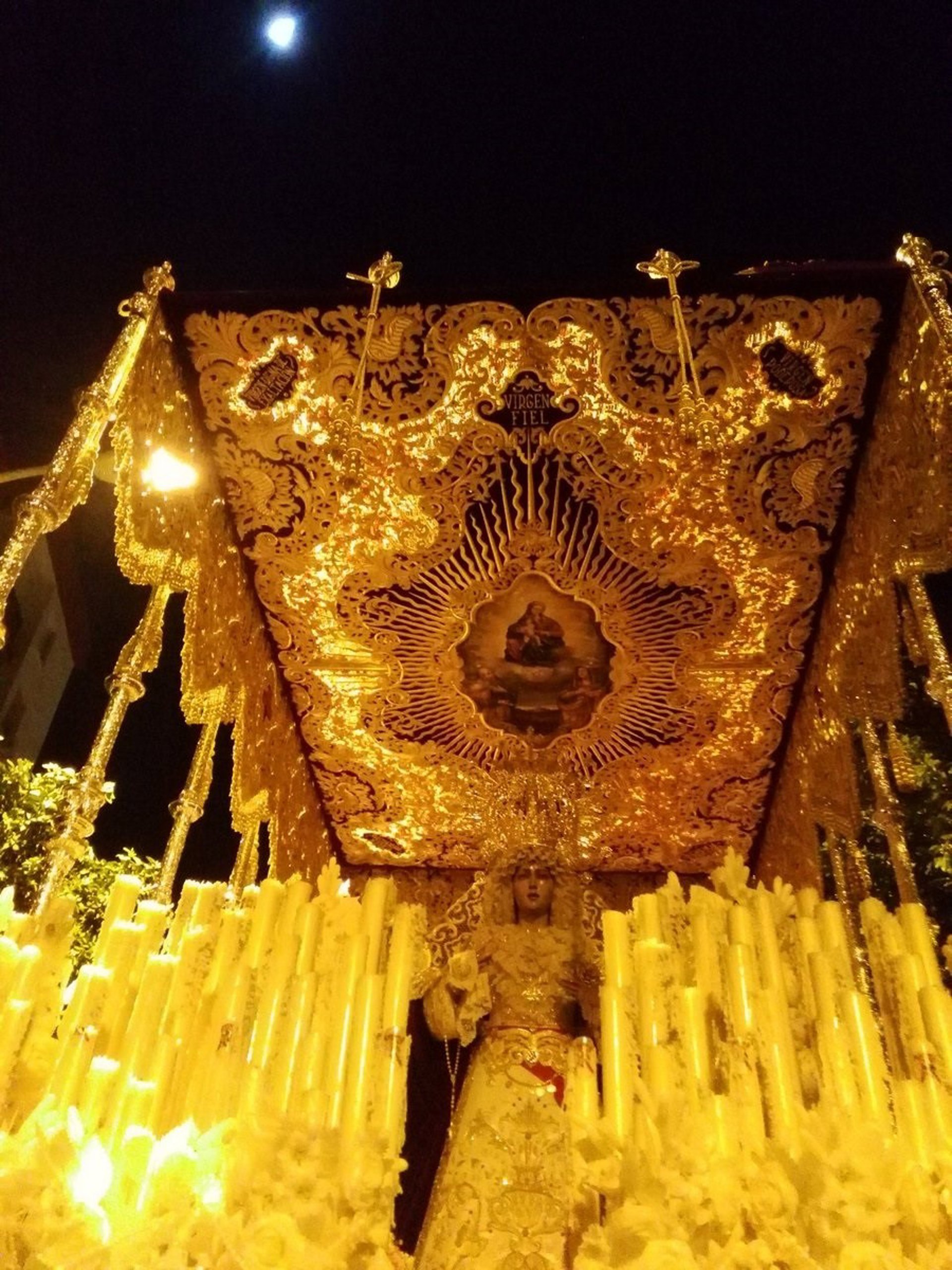Los hechos han tenido lugar poco antes de las 22,40 horas, cuando el cortejo ha debido detenerse en la calle Venecia tras sufrir un incidente con la bambalina delantera, caída debido a la fractura del bastidor de madera.