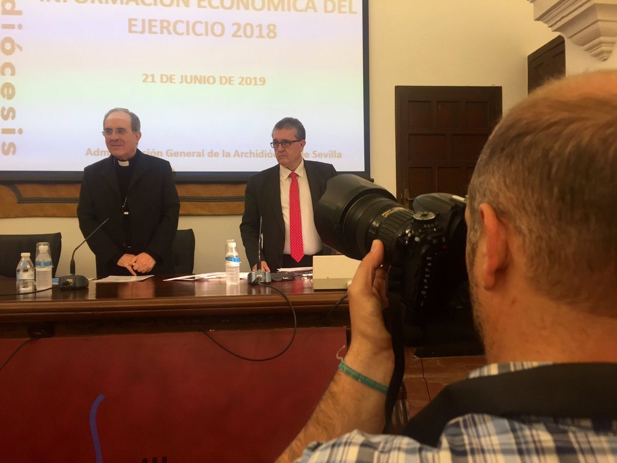 Juan José Asenjo ha celebrado este viernes una rueda de prensa al objeto de presentar las cuentas de la Archidiócesis de Sevilla correspondientes al ejercicio 2018, que en términos consolidados, es decir sumando las cuentas de la institución y las de sus entidades satélite, arrojan ingresos y gastos por importe de 51,7 millones de euros frente a los 45,3 millones contabilizados en ambos aspectos en 2017.