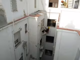 Cuando llegaron los equipos de emergencia, localizaron a un obrero en el interior del patio, al que había llegado por sus propios medios, pero que se había desvanecido al llegar al suelo, mientras que el compañero permanecía colgado del arnés de seguridad a la altura de un quinto piso.