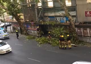 La incidencia ha motivado el despliegue de efectivos de los bomberos y de la Policía Local, toda vez que el Ayuntamiento hispalense acomete actualmente la tala de unos 500 árboles declarados en situación de riesgo cuatro para las personas y considerados "irrecuperables" a cuenta de su deterioro.