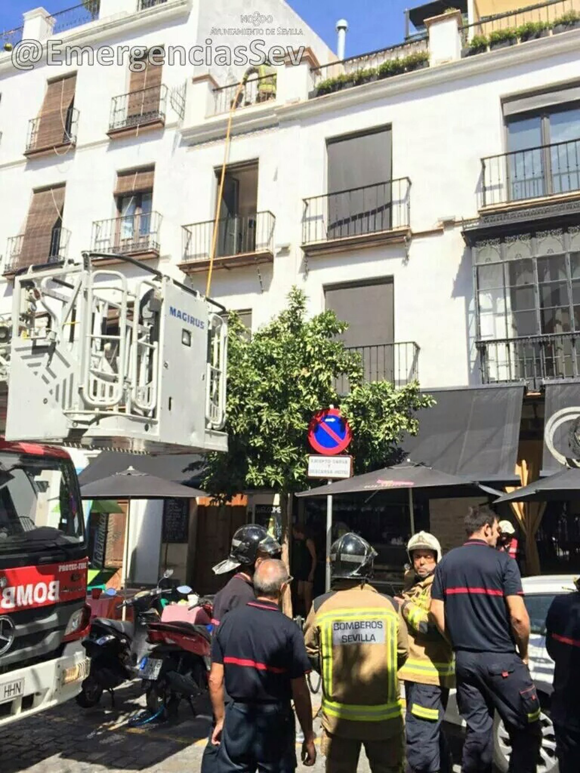 Cuatro dotaciones de bomberos y varias de Policía Local, Cuerpo Nacional de Policía y 061 se han desplazado este domingo a la calle Alemanes de Sevilla capital a causa de un incendio producido en un hotel que ha quedado controlado y que no ha provocado heridos.