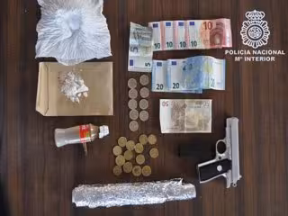 Según ha informado la Policía Nacional en un comunicado, también se ha detenido a una tercera persona que realizaba tareas de vigilancia para dar la voz de alarma si detectaba presencia policial. Durante el registro domiciliario, los agentes se han incautado de cocaína pura, así como de un arma de fuego simulada, dinero en efectivo y enseres para el tratamiento y corte de la droga.