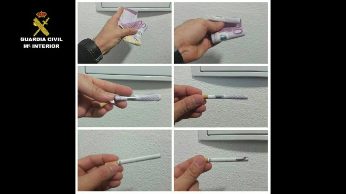 Guardias civiles del aeropuerto de Sevilla, con el apoyo del Grupo de Reserva y Seguridad (GRS) del mismo Cuerpo, realizaron una inspección minuciosa y exhaustiva del equipaje y del pasajero, localizando el dinero oculto en forma de cigarrillos y en el interior de rotuladores.