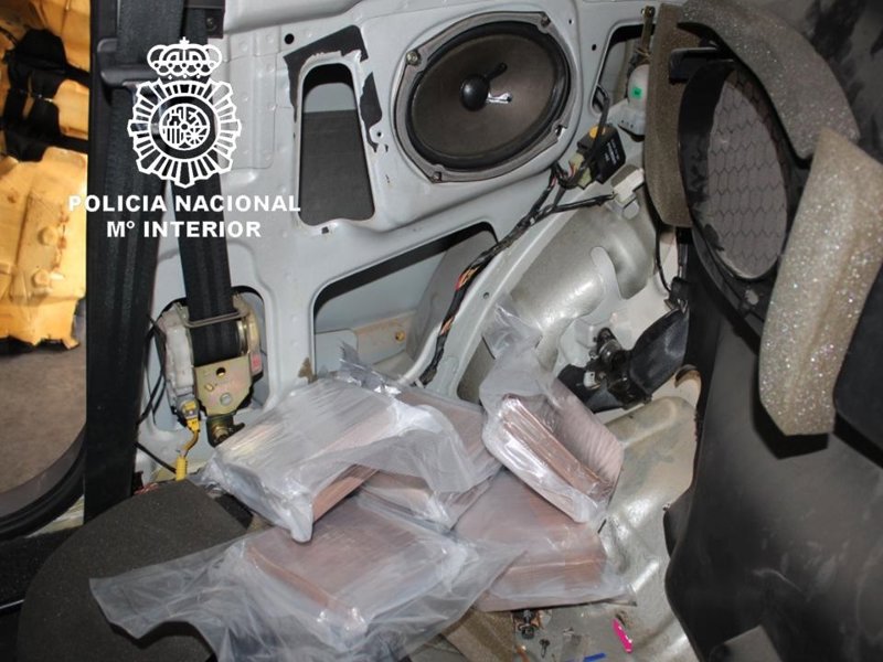 En ese momento, los agentes procedieron a realizar un registro exhaustivo del vehículo hasta que encontraron varios paquetes ocultos en la parte de los asientos traseros del coche, localizados en los habitáculos que normalmente albergan los altavoces del mismo.