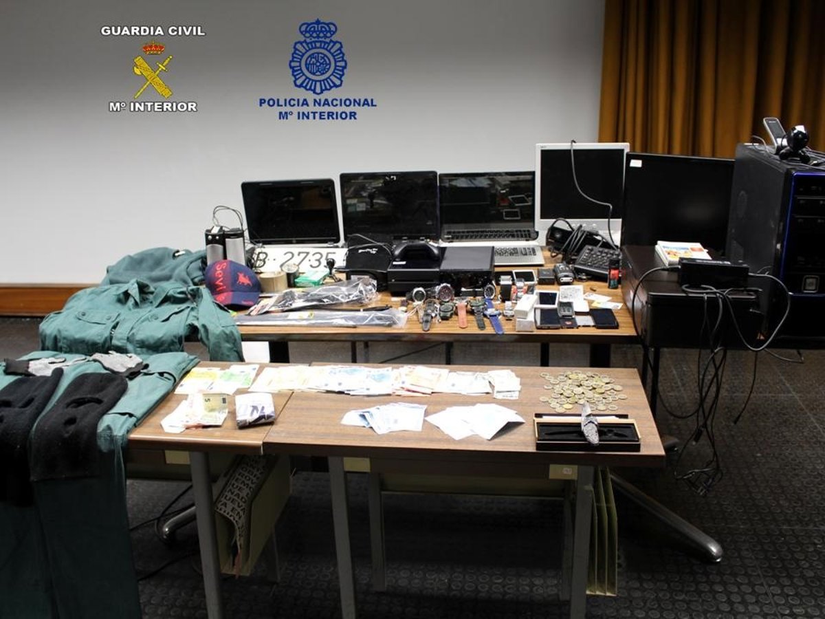 Después de varios registros domiciliarios, los agentes se incautaron de varios ordenadores portátiles, teléfonos móviles, inhibidores de frecuencia, una Tasser (dispositivo eléctrico paralizante), uniformes de campaña de la Guardia Civil y placas policiales, entre otros objetos, así como de 3.900 euros en efectivo.