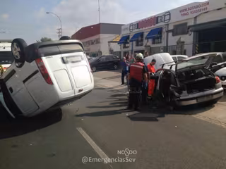 Un vehículo, en concreto una furgoneta de reducido tamaño, ha volcado en la mañana de este miércoles en el Polígono Industrial Store de Sevilla tras una colisión en la que han resultado heridas leves tres personas, según han informado fuentes municipales.