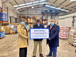 La iniciativa partió hace tres años cuando la plantilla de Surtruck decidió renunciar a las cestas de Navidad que recibía y que también regalaban a sus clientes para hacer una donación, con todo ese presupuesto, al Banco de Alimentos de Sevilla.