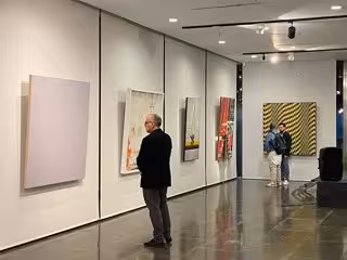 Un asistente a la exposición del certamen de pinturas de Grúas Lozano. - AYTO.DE SEVILLA