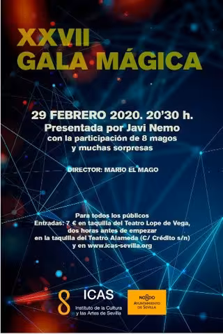 La magia vuelve a ser la protagonista en el Teatro Alameda con la celebración, el sábado 29 de febrero, de la XXVII Gala Mágica, un espectáculo que reunirá en su escenario a los mejores magos e ilusionistas de todo el país de la mano de la Asociación de Magos Sevillanos MMC y con la dirección de Mario el Mago.