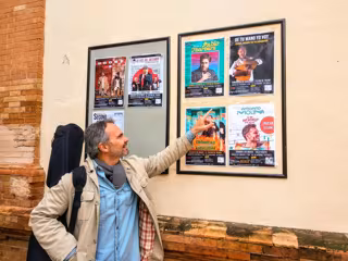 El artista Manuel Márquez de Villamanrique, junto al cartel de su último espectáculo - EUROPA PRESS