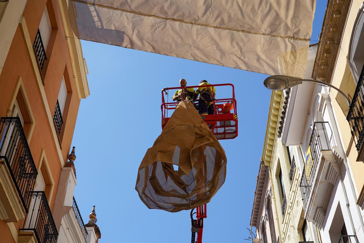 Archivo - Imagen de archivo de la colocación de los toldos en el centro de Sevilla - Eduardo Briones - Europa Press - Archivo