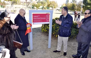 El municipio sevillano de Tomares ha rendido homenaje al pintor y vecino de la localidad Pedro Escacena al ponerle su nombre a un parque tomareño. El acto se ha llevado a cabo este domingo a las 12,30 horas en el parque situado en la calle Valdés Leal. De este modo, el alcalde de Tomares, José Luis Sanz (PP), ha descubierto, junto al artista, la placa del parque con el nombre del pintor, quien ha asistido rodeado de familiares, vecinos y compañeros del mundo del toro.