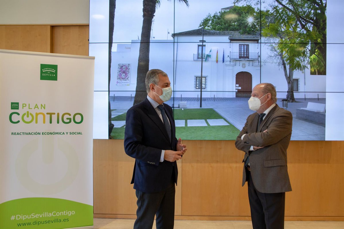 El presidente de la Diputación de Sevilla, Fernando Rodríguez Villalobos, ha mantenido un encuentro presencial con el alcalde de Tomares, José Luis Sanz (PP), con el que ha revisado algunos aspectos relativos a las asignaciones y proyectos que acometerá el Ayuntamiento con el Plan Contigo, que otorga 2,7 millones a la localidad sevillana.