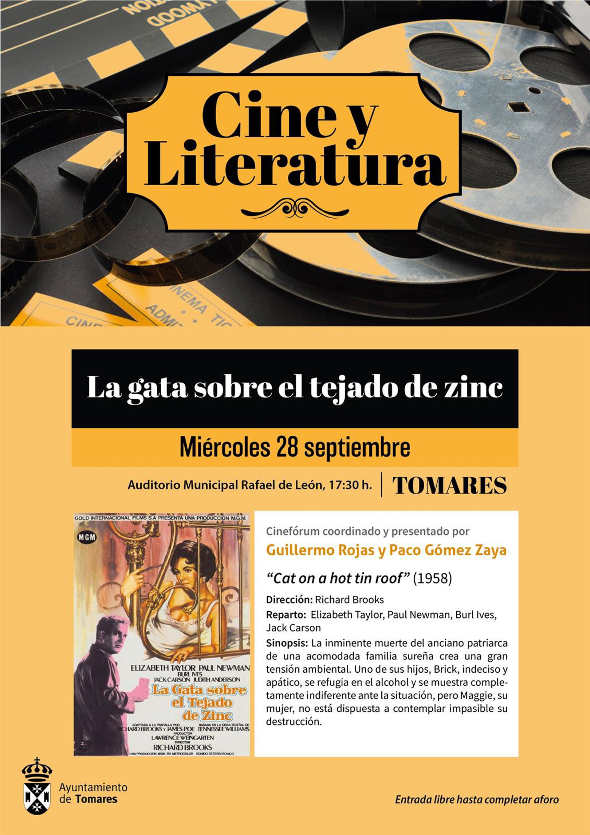 El Ayuntamiento de Tomares (Sevilla) ha organizado un CineForum que traerá a la localidad todos los miércoles desde septiembre a noviembre diez "joyas" de la literatura que se han llevado a la gran pantalla como 'La Gata sobre el tejado de zinc' (1958), dirigida por Richard Brooks basada en la obra de Tennessee Williams, protagonizada por Elizabeth Taylor y Paul Newman, que se proyectará este próximo miércoles 28 de septiembre.