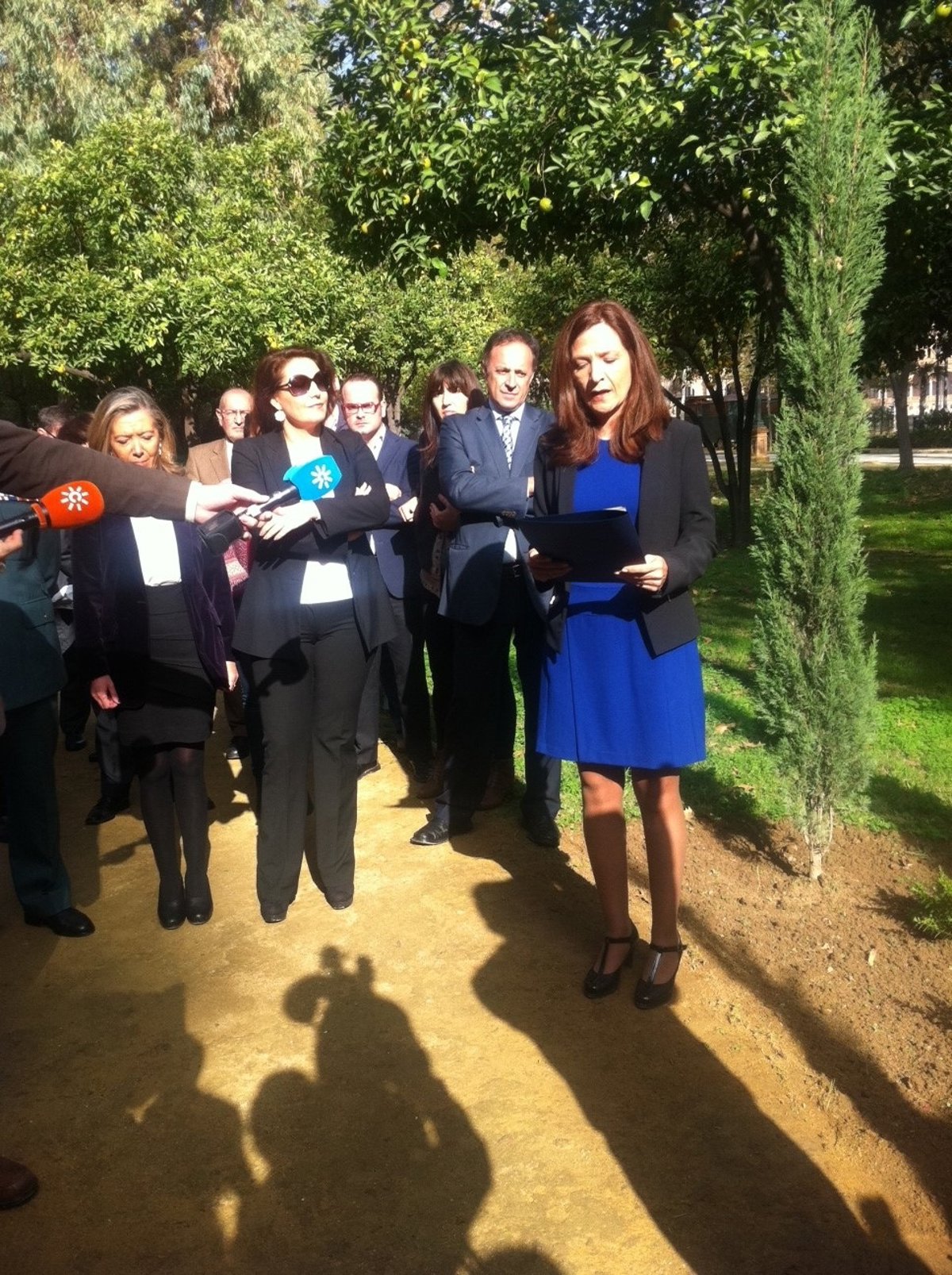 Crespo presidió un sencillo acto con motivo del Día Internacional de la Violencia de Género, donde la coordinadora de Violencia de Género en Sevilla, Julia Torres, leyó un manifiesto elaborado por la Delegación del Gobierno en el monumento conmemorativo que existe en el Parque de María Luisa, que incluye cipreses y flores, y donde acudieron principales representantes de Cuerpos y Fuerzas de Seguridad del Estado.