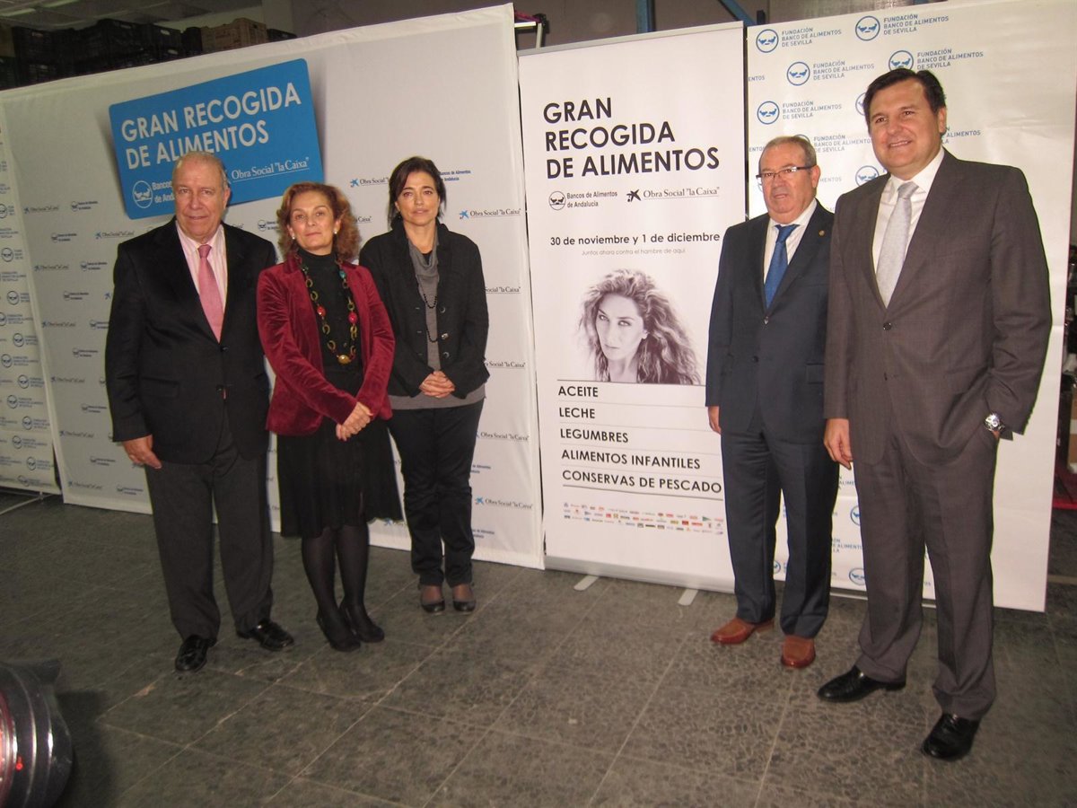 En el acto de presentación han participado el presidente del Banco de Alimentos de Sevilla, Juan Pedro Álvarez; el delegado general de La Caixa de Sevilla, Felipe Pulido; la subdirectora del Área de Integración Social de Fundación 'la Caixa'; la delegada de Familia, Asuntos Sociales, y Zonas de Especial Atención, Dolores de Pablo; y el diputado de Concertación Manuel Domínguez.