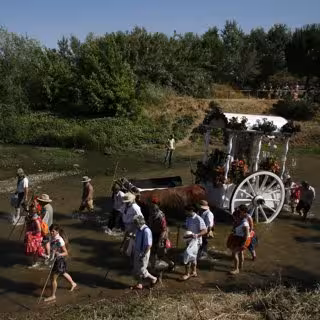 Por los caminos de Sevilla llegan a El Rocío 33 hermandades, como son las de Almensilla, Aznalcázar, Benacazón, Bollullos de la Mitación, Camas, Carmona, Carrión de los Céspedes, El Cerro del Aguila, Coria del Río, Dos Hermanas, Gelves, Gines, Huévar del Aljarafe, La Algaba, Lebrija, Los Palacios y Villafranca, Mairena del Alcor, Morón de la Frontera, Olivares, Palomares del Río, Pilas, La Puebla del Río, San Juan de Aznalfarache, Santiponce,Sevilla-Sur, Tocina, Umbrete, Utrera, Villanueva del Ariscal y Villamanrique de la Condesa. Asimismo, entran Córdoba y las malagueñas de Estepona, Fuengirola.