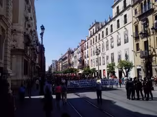 Trabajadores de los hospitales de la empresa Pascual, ubicados en las provincias de Cádiz, Málaga y Huelva --entre 3.000 y 4.000 personas, según la organización-- se han manifestado este jueves por el centro de Sevilla para exigir cuatro años de concierto, después de que la consejera de Igualdad, Salud y Políticas Sociales de la Junta, María José Sánchez Rubio, anunciase que éste se renovará solo por doce meses.