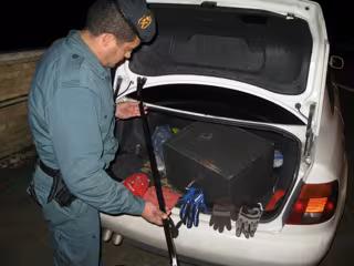Dos patrullas más, una de Lebrija y otra del Destacamento de Tráfico de Utrera se incorporan a la persecución. El vehículo sospechoso se adentra en la antigua carretera A471, que se encuentra cortada por obras hasta que, tras saltar el vehículo un desnivel de un metro, se para y huyen sus tres ocupantes.