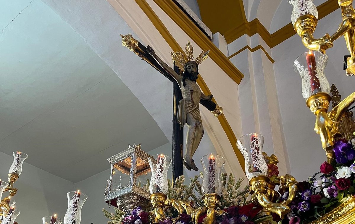 Imagen del Santísimo Cristo del Crucero, patrón de Almadén de la Plata, en su paso procesional. - HDAD.CRISTO DEL CRUCERO